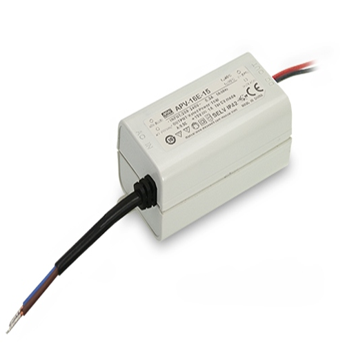 MEANWELL Power Supply -APV-16E Item No. Wattage Voltage IP Rating Certification MW-APV-16E-12 15W 12V IP42 CE,UL,CCC,PSE,SAA,KC MW-APV-16E-24 16.08W 24V IP42 CE,UL,CCC,PSE,SAA,KC [template id="1785"] -