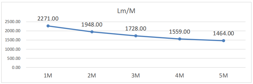The following charts shows the parameters on each meter based on 5M length.